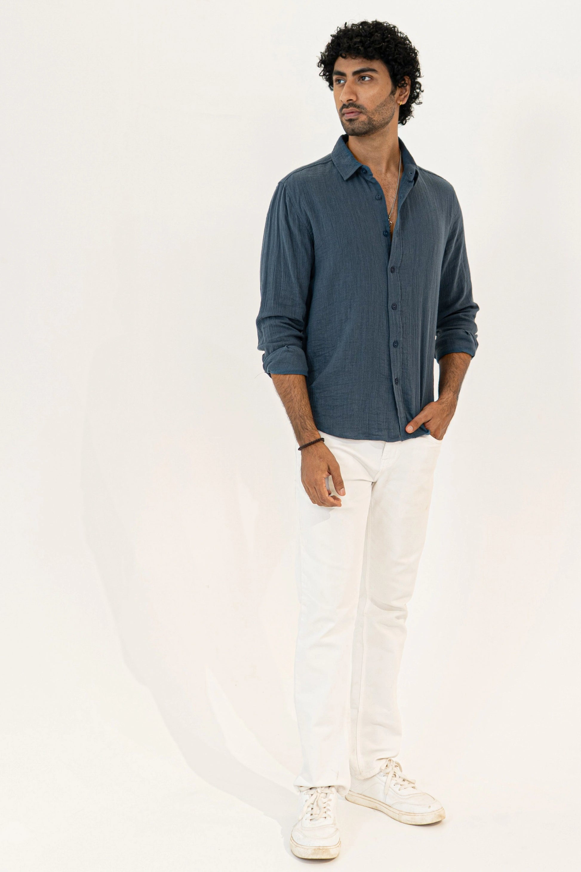 Product Name: Rusty Blue Crinkle Gauge Shirt